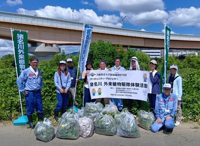 活動レポート 大阪教育大学附属池田中学校では、総合学習の授業の一環で、3年生が小グループに分かれ、さまざまな地域で奉仕活動を行うコミュニティープロジェクト(CP)に取り組んでいます。その中で外来植物の問題について取り組むグループがあり、グループの活動をSNSやYouTubeなどで発信するほか文化祭での発表等を通じて、外来植物の生態について広く知ってもらおうとしています。