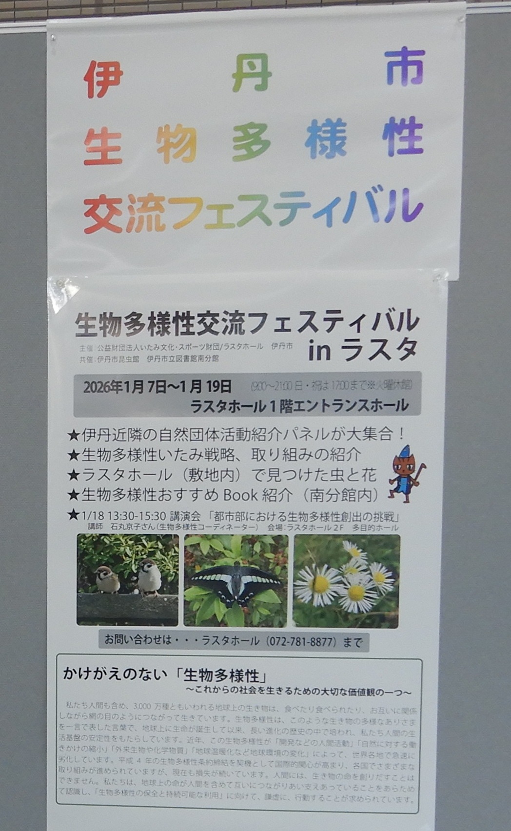 伊丹市や周辺地域で活動する学校・市民団体・企業・自治体などが集まり、生物多様性に関する様々な取組を紹介する「伊丹市生物多様性交流フェスティバル」(主催:伊丹市、公益社団法人いたみ文化・スポーツ財団)のポスター展に出展しました。