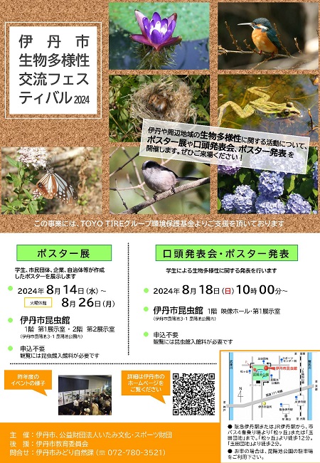 「伊丹市生物多様性交流フェスティバル」(主催:伊丹市、公益社団法人いたみ文化・スポーツ財団)のポスター展に、佐藤河川レンジャーが出展しました。同フェスティバルは、伊丹市や周辺地域で活動する学校・市民団体・企業・自治体などが集まり、生物多様性に関する様々な取組を紹介するものです。猪名川河川レンジャーでは地元で活動する佐藤河川レンジャーが毎年出展し、猪名川の環境に関する啓発に取り組んでいます。