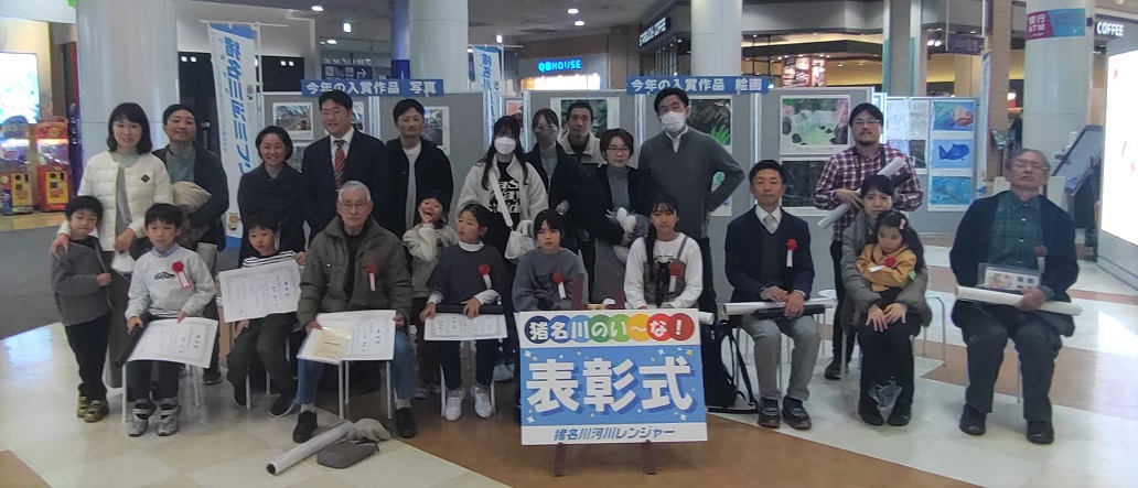 応募作品の中から、猪名川の魅力を表現した作品として「猪名川河川事務所長賞」を2作品、「猪名川河川レンジャー賞」を8作品選定し、12月4日にイオンモール伊丹1Fエンターテインメントコートの作品展会場で表彰式を行いました。表彰式では、ご出席いただいた9名から表彰の感想を発表いただきました。