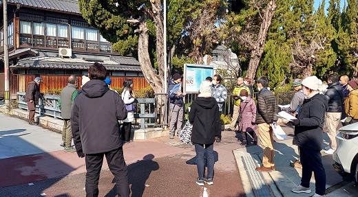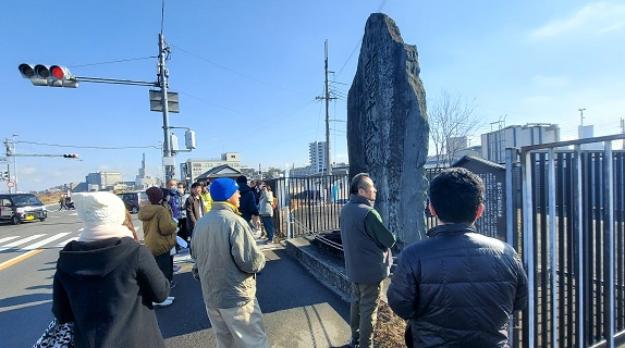 浸水歩行キットに水を貯める約40分の間に、周辺の歴史探訪ウォークを体験しました。