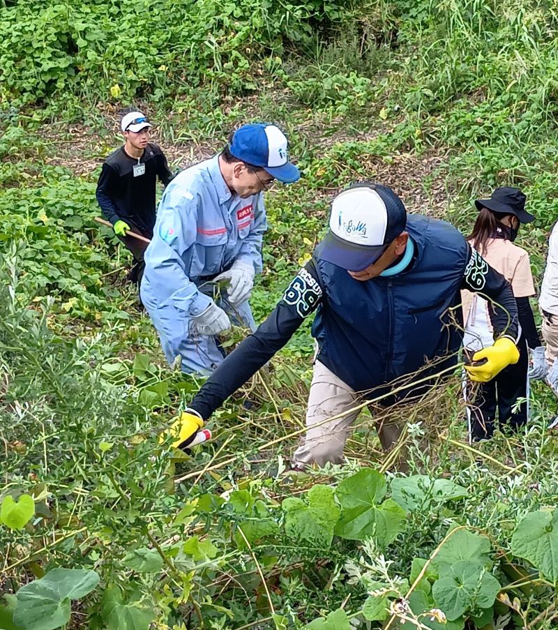 計17名で1時間ほどの駆除作業を行い、ゴミ袋35袋分もの量のアレチウリを駆除することができました。